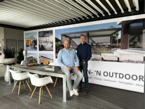 Het duo bouwde in korte tijd een hechte samenwerking op. In-’n Outdoor telt inmiddels 44 medewerkers, levert zowel aan particulieren als zakelijke klanten, en is actief in een sector die volop in beweging is. “Er vindt veel consolidatie plaats,” legt Michael uit. “Kleinere bedrijven zonder opvolging verdwijnen, grote fabrikanten proberen dichter bij de klant te komen. Juist dan is het belangrijk om jezelf regionaal te versterken — met kennis, service en betrouwbare partners.”